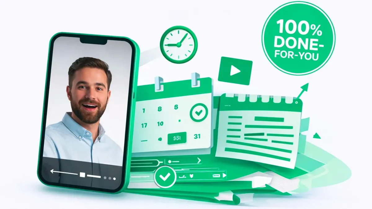We handle everything: research, writing, images, videos, editing and posting. All without you lifting a finger.